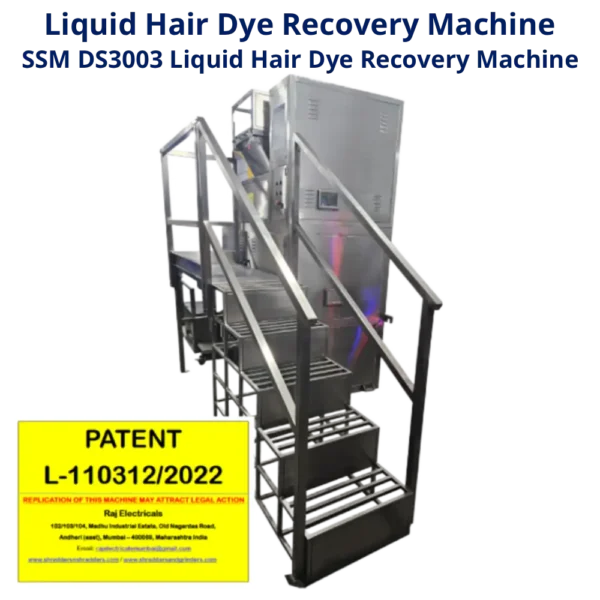 The Liquid Hair Dye Recovery Machine has been developed for hair dye manufacturing companies. It is used to recover the hair dye from rejected pouches.