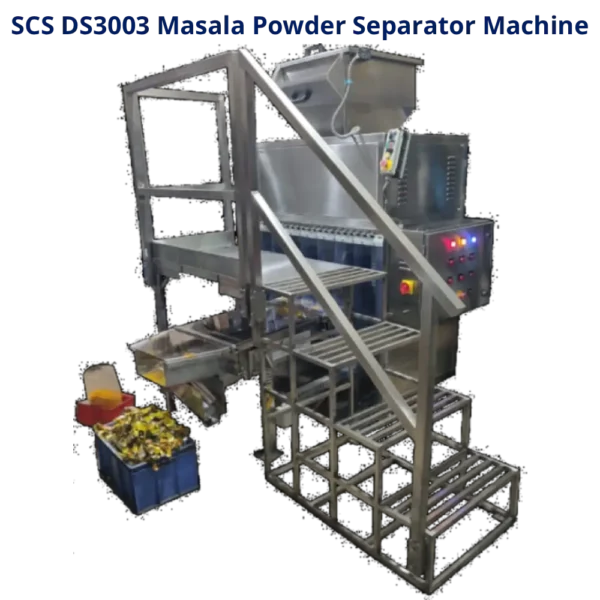 Dual-Shaft Masala Powder Separator Machine destroys defective pouches and simultaneously collects the masala separately. This SCS DS3003 heavy-duty machine, also known as the Masala Pouch Separator Machine, is manufactured by Raj Electricals using premium quality materials. This user-friendly Masala Powder Separator Machine performs continuous duty for 24 hours.
